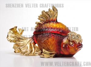 欧式家居饰品摆件 红金鱼糖果盒