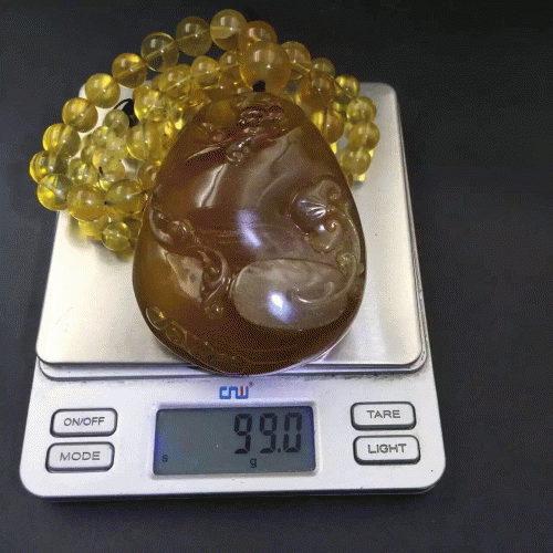 收藏级别!!!缅甸琥珀,金绞蜜雕件