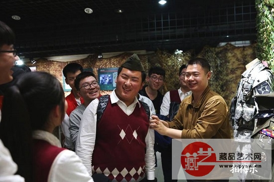 在讲解过程中,李宗源要一名同学试戴美军的船形帽。