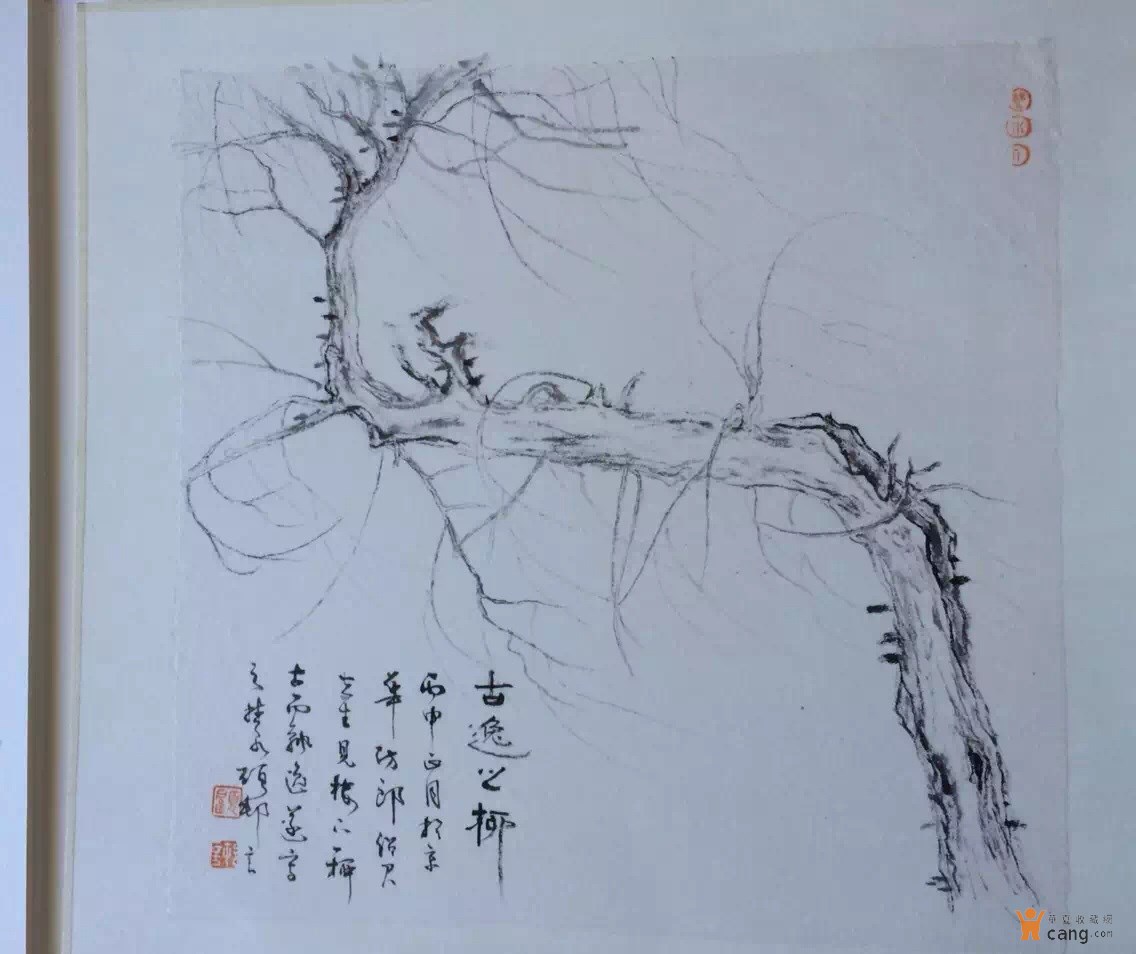 顾村言水墨画《古逸之柳》