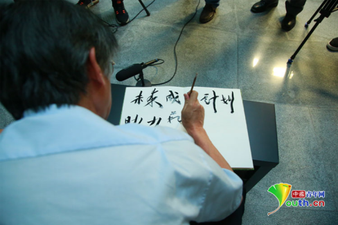 范迪安为“未来成长计划”题词:未来成长计划,助力艺术梦想。中国青年网实习记者 李亚飞 摄