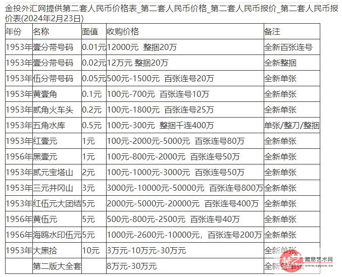 温馨提醒:市场行情变化较快,以上第二版人民币收藏价格仅供参考,具体行情报价请根据成交当时钱币的品种、出售还是回收决定。