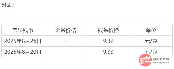 2025年8月26日,实物黄金宝泉钱币银条报价9.32元/克,相比上一个交易日下跌了0.01元/克。