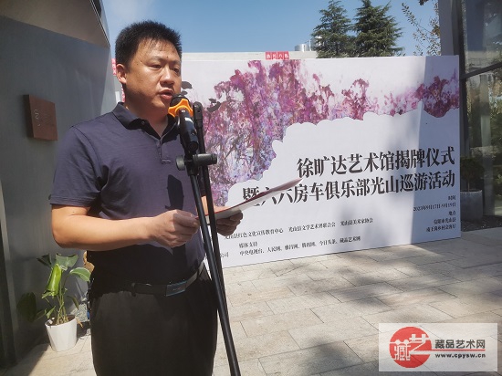 仪式伊始,光山县委常委、宣传部部长、副县长王廷辉同志向与会来宾致欢迎辞,介绍了光山县的红色历史和文旅景观。艺术家徐旷达先生向各位领导及来宾致答谢辞,向盛巧荣先生和姜圻儒女士分别颁发执行馆长与副馆长聘书。在来宾们的共同见证下,县委领导同志与徐旷达先生一起为徐旷达艺术馆揭牌。