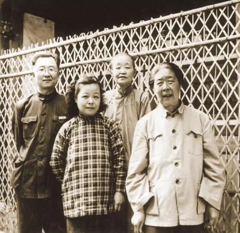 20世纪50年代,启功与家人合影。(从左至右:启功、启功的夫人、启功的母亲、启功的姑)