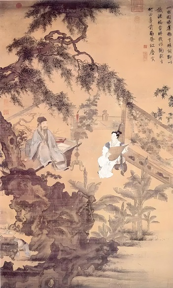 ⑴创作背景:此画取材于五代后蜀宫廷生活,描绘四位宫妓歌舞宴乐的场景,是唐寅工笔人物画的巅峰之作。