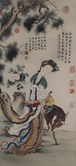 ①造型:人物面部以淡墨渲染,眉眼传神,衣裙以泼墨点染,潇洒自然,体现写意人物画的突破。