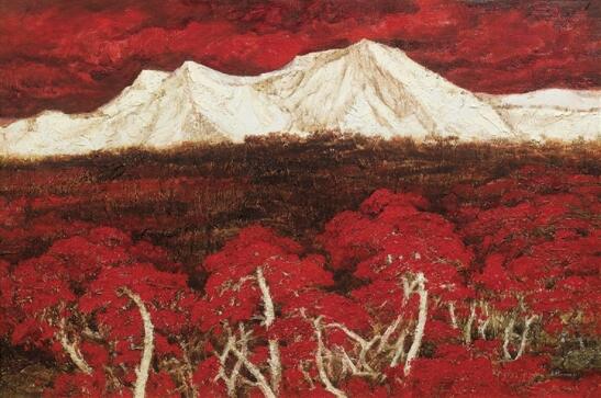不仅是《红烛颂》,父亲闻一多特殊的命运轨迹,直接给了闻立鹏很深的心灵影响。他多数作品的颜色是浓烈的,这是一种热血的激情。红色的涂抹,黑白的反差,大悲悯与大情怀相互融合,造成一种强烈的艺术感染力。无论是革命题材人物画还是风景画,崇高壮美可以说是闻立鹏作品的真实写照。