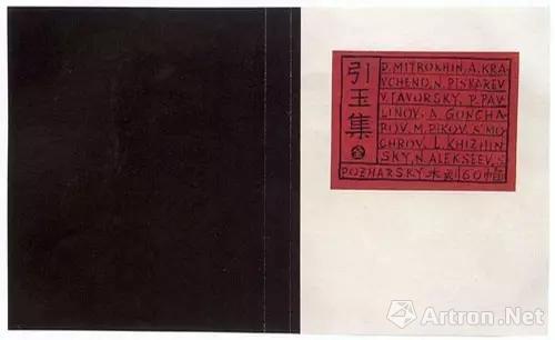 此书为精装本,鲁迅专门送到日本印刷。苏联版画家们的姓名字母被分为八行横排,置入中式版刻风格的“乌丝栏”中,与左边竖写的“引玉集”三个大字相映成趣。又有一圆形阴文的“全”字将方形构图打破,红底黑字的方框顿时便活络起来。封面最左边有一黑色边线,漫过书脊,流向整个封底。红与黑、与封面的白底形成强烈对比,乃中国出版物的经典用色。
