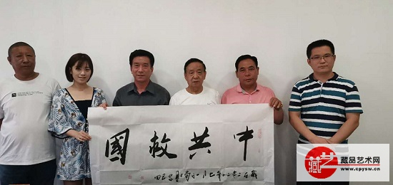 王景轩(右1)捐书法家尚熙朝先生(右3)书法作品《中共救国》