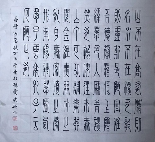 宋德明书法作品 宋德明书法作品 书法家宋德明先生近照 宋德明,男,字墨青,半岛墨香斋主,1951年生,山东省栖霞市人。自幼酷爱书法,一生蜗居民间,不求名利,近几年接受朋友的诚劝,成为山东省书协会员。2014年被中国福山蛤㠠寺特聘书家,为其书写佛经和碑文。多年来共培养书法学生60多人。书法以正书见长,主修欧楷、兼融褚、柳、赵等多体,篆书主修峄山刻石,兼融说文解字等,同修隶、行、草、榜书等。近几年作品走向全国各地,多次参加省市书法大展均获奖。另有近200幅作品流传至美国、加拿大、英国、新加坡、韓国、日本、俄罗斯、香港、澳门、台湾等国家和地区。 宋德明书法作品 宋德明书法作品 宋德明书法作品 宋德明书法作品 宋德明书法作品
