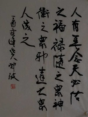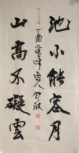 邓波书法作品 邓波书法作品 书法家邓波近照 邓波,号宝峰逸人,当代著名书法家,1967年8月14日出生,湖南张家界人。张家界书画研究院院长、中国书画院会员、中国硬笔书法家协会会员、中国书法家协会湖南省分会会员、张家界市书法家协会副主席、武陵源美术书法家协会名誉主席。 自幼就与笔、墨、纸、砚结下了不解之缘,凭着一腔对书法艺术真谛的追求和探索,遍临名家碑帖,广纳书道精髓,孜孜以求,潜心钻研,又因天时地利,有幸结识了国内外书画名家、同道,虚心求教,受益匪浅,逐渐形成了自己独特的艺术风格。 受家乡奇山秀水的陶冶与浸润,作品力求自然脱俗,浑然天成,既不失传统书法的凝重与浑厚,又具有现代韵味的粗犷与大气。作品先后在全国、省、市书展书赛中入选入展并获奖,报刊杂志刊载,石刻碑林亦有墨迹;数幅作品被美、日、韩、港、澳、台等海内外友人收藏。 邓波书法作品 邓波书法作品 邓波书法作品 邓波书法作品