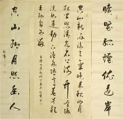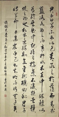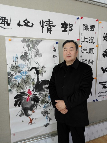 他自幼酷爱书法艺术,几十年来临池不辍、孜孜以求,博读历代名帖,广研古今书理,软、硬笔皆能。楷书从欧、柳;隶书师法《张迁》、《曹全》等碑;行书涉猎二王、米芾、王铎等法帖;草书从《书谱》入手。信奉书为心声,字为心画。灵感所至,心笔相融。追求扎实的功底,渊博的知识。他对于书法艺术不是一般的喜爱,而是一种发自内心的真爱、挚爱和酷爱,并把书法当作事业和生命的重要部分来看待。虽然工作繁忙,但对于书法的热情却从未有丝毫减弱。难有整块时间临池,每每周末或午夜,闭门于斗室,流连于笔情墨韵之间,几达废寝之境。诸体中最擅长行草,与时下流行书风截然不同的是,他的行草作品执意追求清新、秀雅之美,以“美”来感染人。字里行间处处充溢着直率、朴厚、秀美的气象,散发着浓浓的文人气息。