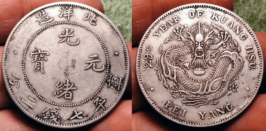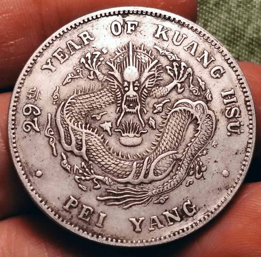 在湖北省黄冈市这座历史悠久、文化底蕴深厚的城市里,熊先生是一位对家族传承充满深厚情感的收藏家。他手中紧握着一枚世代相传的“北洋造29年光绪元宝库平七钱二分”,这枚钱币不仅是熊先生祖父留下的无价之宝,更是连接熊家数代人情感的桥梁,见证了从晚清至今的历史风云变幻。自记事起,这枚钱币便如同一位忠实的伴侣,伴随着熊先生经历了无数次生活的变迁,如今已与他共度了半个多世纪的悠悠岁月。