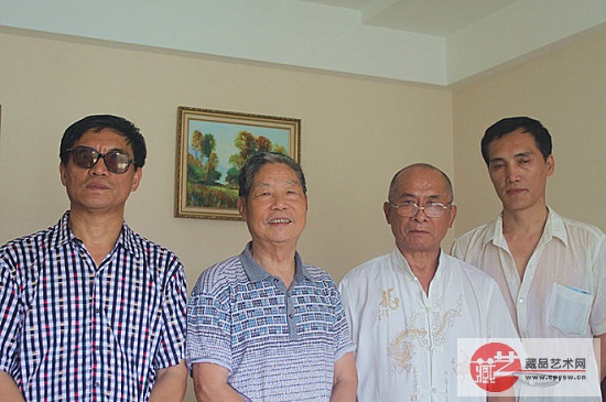 2013年7月25日张国富在烟台和中国当代百位书画名家交流,左起蔡立安院长,黄有志院长,张国富本人,刘鉴公书画家。
