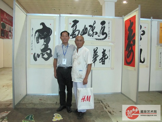 2013年7月26日张国富在烟台和中国当代百位书画名家王庆穹先生交流合影