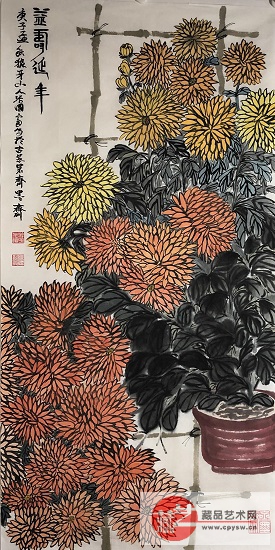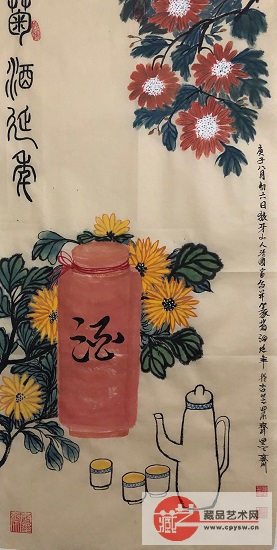 2020年9月22日张国富原创写意作品《菊酒延年》100X50