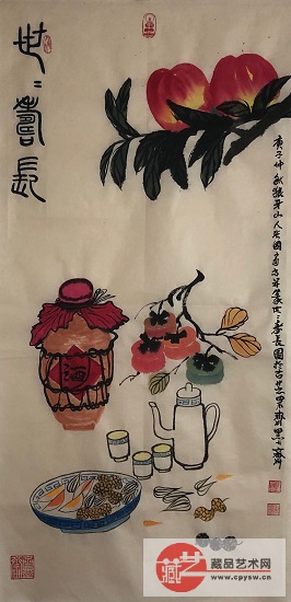 2020年9月11日张国富原创写意作品《延年益寿图》100X50
