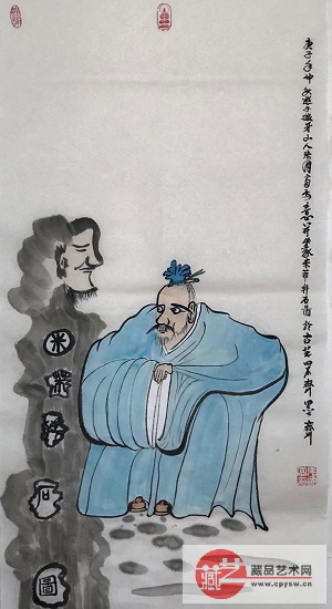 2020年10月5日张国富原创写意作品《米芾拜石图》100X50