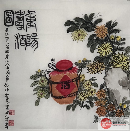 2020年10月24日张国富原创写意作品《重阳寿酒图》50X50