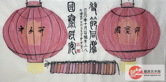 2020年10月1日张国富原创写意作品《双节同庆 国泰民安图》三尺整张横幅