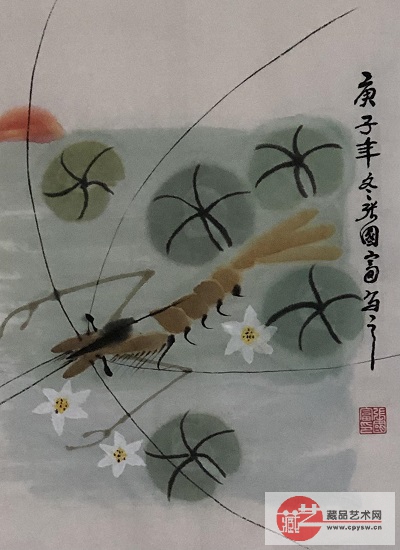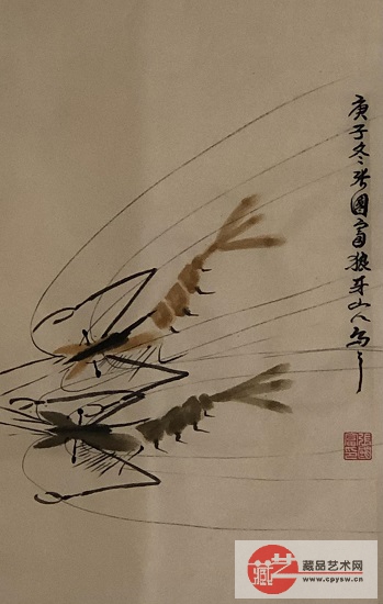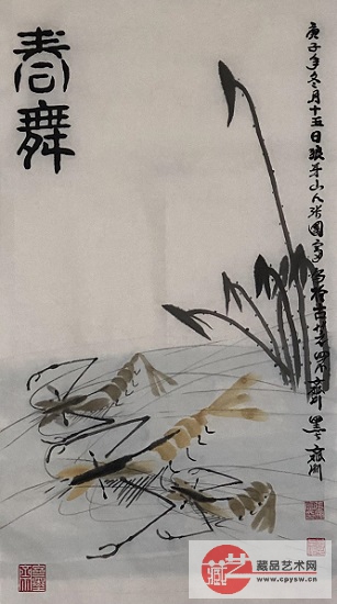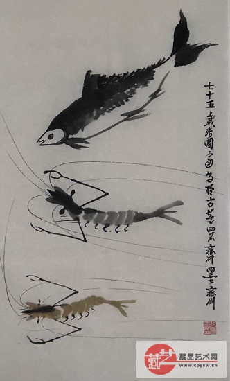 2020年12月28日张国富原创写意作品《鱼虾和谐图》70X35