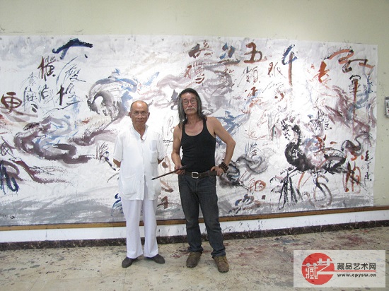 2014年5月26日,张国富在北京昌平和艺术大师萧宽先生(右)在天骄画院交流合影