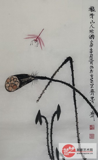2021年3月2日(正月十九)张国富原创写意作品《蜻蜓莲蓬图》70X46