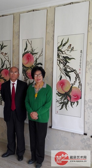 2016年10月6日,张国富(左)在山东龙口拜会著名书画家刘凤仙(右)交流合影