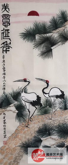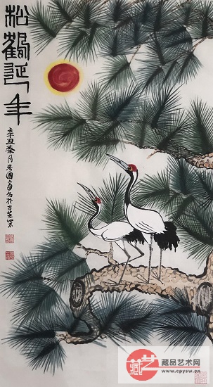 2021年3月4日(正月二十一)张国富原创写意作品《松鹤延年图》100X50马平川收藏