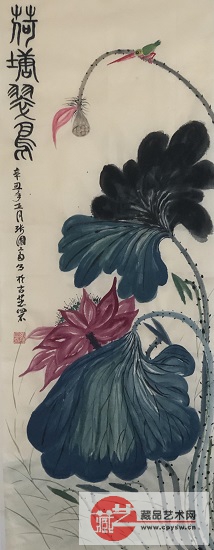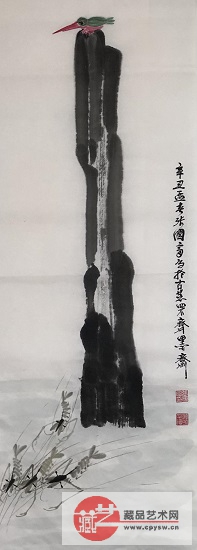 2021年3月3日(正月二十)张国富原创写意作品《荷塘翠鸟图》100X40