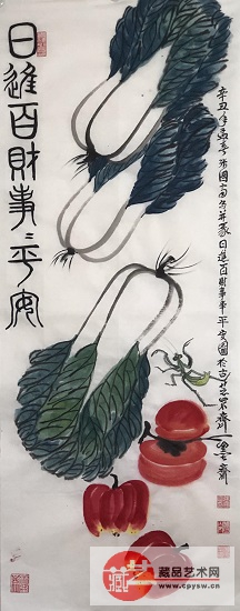 2021年3月1日(正月十八)张国富原创写意作品《日进百财事亊平安图》赠刘书平先生收藏100X40