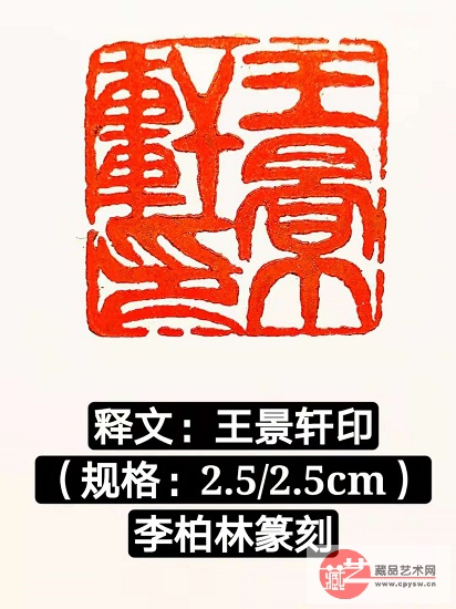 李柏林为王景轩篆刻印章释文“王景轩印”