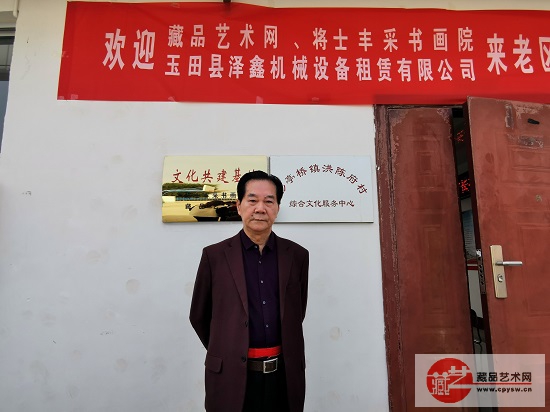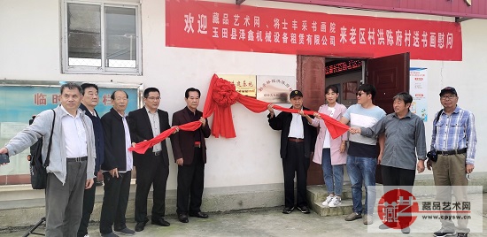 在今年的10月2日上午,藏品艺术网、将士丰采书画院“文化共建基地”揭牌仪式暨送书画慰问活动在河北省唐山市玉田县彩亭桥镇老区村洪陈府村成功举办,原解放军后勤指挥学院常务副院长、正军职少将邵积平,原黑龙江省军区副政委姚振普少将等嘉宾和洪陈府村乡亲共同为“文化共建基地”揭牌。