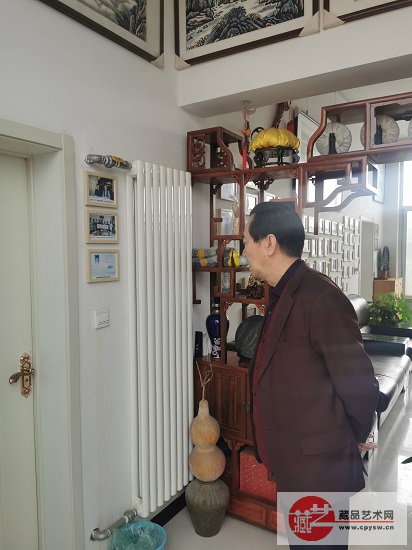邵积平将军夫人王慧智与家里摆放的两枚“光荣在党50年”纪念章