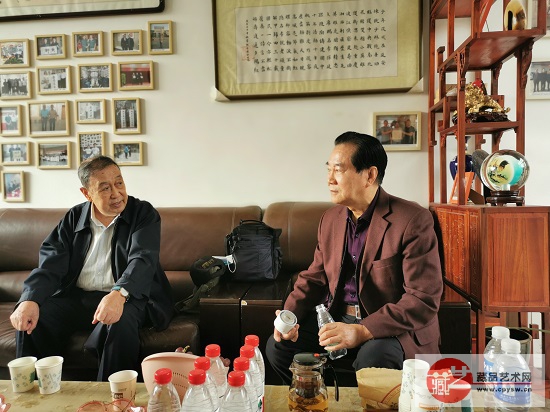 邵积平将军(左)在藏品艺术网总编辑、将士丰采书画院负责人王景轩位于洪陈府村的文化小院