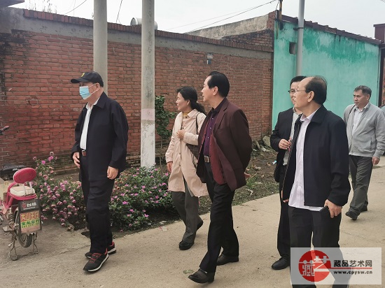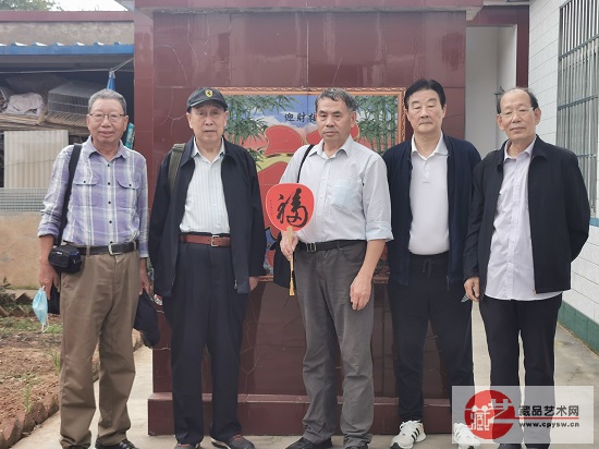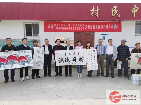姚振普将军(左4)参加藏品艺术网、将士丰采书画院艺术家们向洪陈府村捐赠书画作品仪式