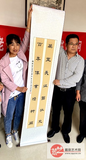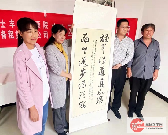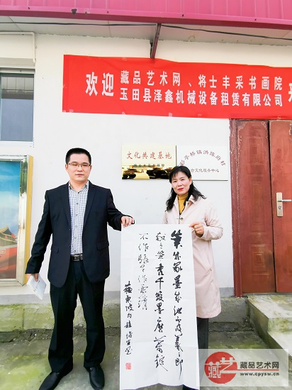 2021年10月2日上午,藏品艺术网、将士丰采书画院“文化共建基地”揭牌仪式暨送书画慰问活动在河北省唐山市玉田县彩亭桥镇老区村洪陈府村成功举办,藏品艺术网书画艺术委员会新晋会员、航天火箭公司女工程师赵艳彬嘉宾出席活动并给村里捐赠一幅装裱好的书法作品。