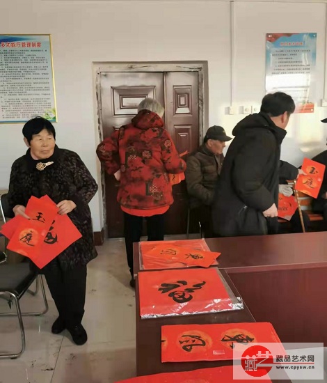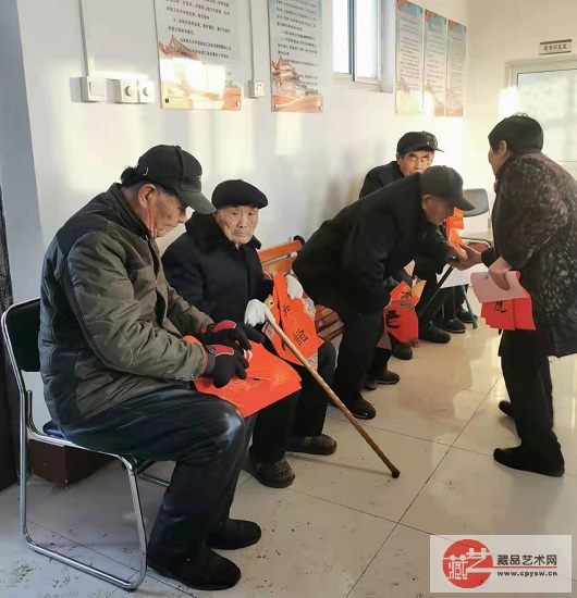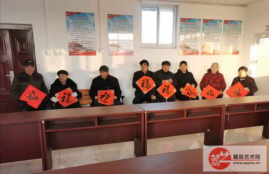 2022年除夕,藏品艺术网爱心书画家联盟和将士丰采书画院向老区村洪陈府村的乡亲们慰问赠送春联福字作品 藏品艺术网北京2月2日讯 除夕下午,由藏品艺术网书画艺委会和将士丰采书画院会员书画家们题写的55幅(对)福字春联作品,慰问赠送到河北唐山玉田县彩亭桥镇洪陈府村老党员代表、退役军人代表和该村孤寡失独老人手中,受到老区村乡亲们的欢迎。 参加写春送福活动的人员有:将士丰采书画院顾问、原副院长、著名书法家韩山林,藏品艺术网总编辑、将士丰采书画院负责人王景轩,将士丰采书画院会员、军旅书法家马锋上校和藏品艺术网书画艺委会会员赵艳彬等。藏品艺术网业务九部副经理王涛与洪陈府村村委委员、会计王志存一起,将寄托着京城书画家们对革命老区浓浓情意的作品分发到乡亲们手中,送上虎年新春的美好祝福。 福字春联送到玉田县老区村洪陈府村乡亲们手中 洪陈府村村委委员、会计王志存(右1)与藏品艺术网业务九部副经理王涛将福字春联分发到乡亲们手中