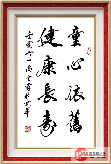 尚全孝将军书写的《童心依旧 健康长寿》作品 尚全孝,辽宁省军区原副司令员,少将军衔。 1943年生,河北邯郸人。1962年入伍,历任沈阳军区科长、部长、集团军副军长、辽宁省军区副司令员等职。 撰写并发表《试论将军文化蕴涵的文化软实力》等文章、诗词数十篇。喜爱书法,为纪念毛泽东、周恩来、朱德等老一辈无产阶级革命家等大型公益活动创作作品数百幅,并被收入《英雄赞歌》、《更喜岷山千里雪》等数十部书籍,有许多作品被省级以上博物馆、纪念馆及中外友人收藏或刻入碑林。