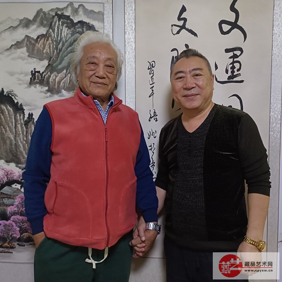 北京湖社画会秘书长关志英(右)与著名人物画家赫连兴中(左)在将士丰采书画院北京经开区工作室一起合影