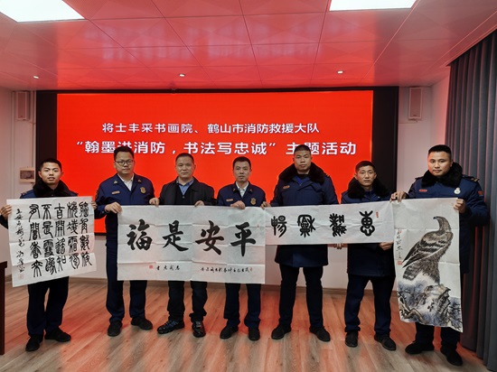 12月21日下午,北京将士丰采书画院与广东省江门市鹤山市消防救援大队联合开展“翰墨进消防 书法写忠诚”主题活动,北京民盟盟员、将士丰采书画院负责人、藏品艺术网总编辑王景轩向长期奋战在消防工作一线的全体同志致以诚挚的问候,提前送上2024年新年的祝福,将藏品艺术网爱心书画家联盟和将士丰采书画院艺术家精心创作的励志主题书画作品,赠送到鹤山大队领导手中,受到消防救援队员们的欢迎。鹤山市消防救援大队党委书记、政治教导员李建华,工程师邹汉志等出席活动。