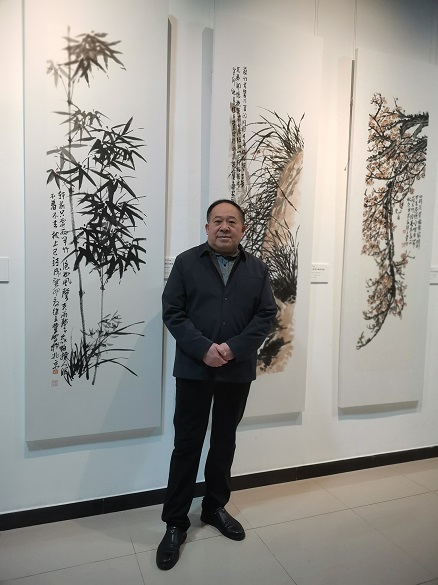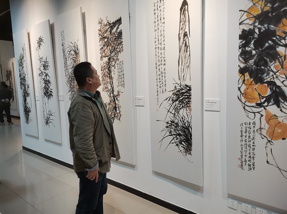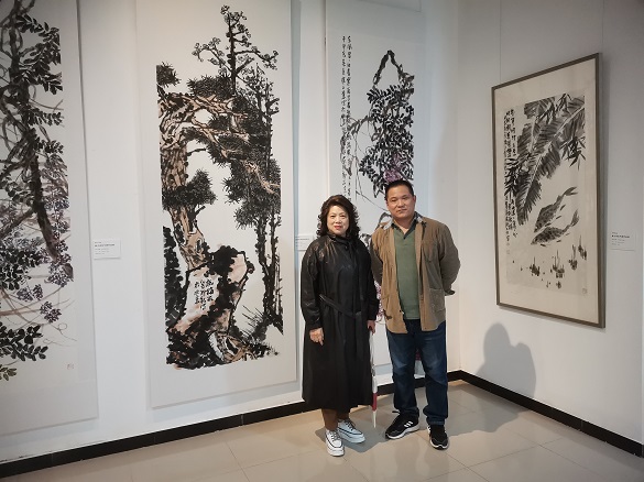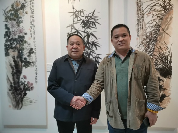 王景轩(右)与著名花鸟画家徐立业(左)在展出作品前留影 藏品艺术网总编辑、将士丰采书画院院长王景轩驻足观看徐立业先生参展作品 2024年10月20日上午,由荣宝斋画院主办、徐州市苏东坡艺术馆协办的“荣宝斋画院历届优秀研修书画家提名个人展暨书画情缘——徐立业花鸟画作品展”在北京荣宝斋画院隆重开幕,藏品艺术网总编辑、将士丰采书画院院长王景轩嘉宾出席开幕式并参观画展。 徐立业先生与其参展作品 徐立业,江苏徐州人。江苏美术家协会会员、中国苏轼研究会理事、徐州市苏东坡艺术馆馆长、国开大学郭石夫花鸟画课程辅导教师。 1986年毕业于长春市广播函授学院国画山水专科。2021年研修于荣宝斋画院郭石夫写意花鸟画研究工作室,为工作室画家,2022年至2024年研修于荣宝斋画院郭石夫访问学者工作室,为访问学者。 王景轩(右)与黑龙江省作协会员、作家、诗人张荔鹃女士(左)在画展现场留影