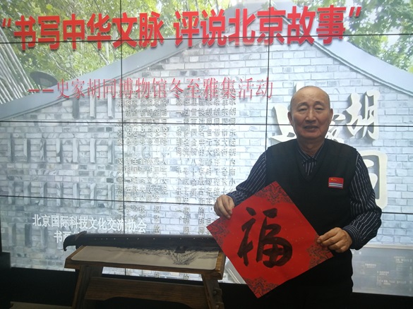 12月21日,“书写中华文脉,评说北京故事”——北京史家胡同博物馆冬至雅集活动成功举办,图为嘉宾们一起合影 北京史家胡同博物馆馆长倩怡女士(左)接受作品捐赠 军旅书法家丁广明大校 2024年12月21日,将士丰采书画院理事、北京书协会员、军旅书法家丁广明大校应邀参加在北京史家胡同博物馆举办冬至雅集活动,现场与嘉宾们一起互动,书写多幅“福”字作品,并向史家胡同博物馆赠送一幅内容为“一条胡同,半个中国”的书法作品,博物馆馆长倩怡女士代表博物馆接受作品捐赠。 据悉,北京史家胡同博物馆历史悠久,名人荟萃,诉说着中华民族的过去和未来。