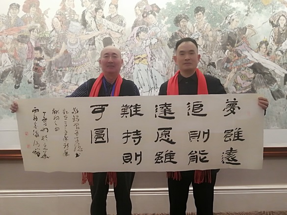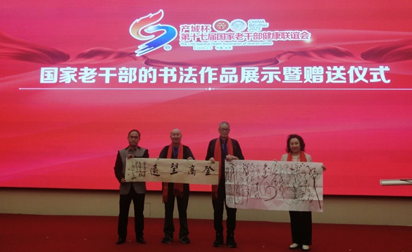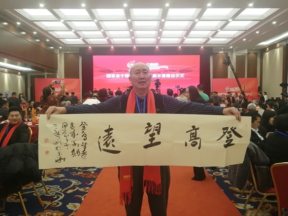 丁广明先生(左2)向大会赠送一幅内容为“登高望远”的书法作品 丁广明先生在会场展示“登高望远”书法作品 丁广明先生(左)向大会赠送一幅内容为“梦虽远,追则能达;愿虽难,持则可圆。”的书法作品 2025年1月5日下午,将士丰采书画院理事、北京书协会员、军旅书法家丁广明大校应邀参加在北京国二招举办的第十七届国家老干部健康联谊会,现场捐赠书法作品以示祝贺!部分在京的老将军、老部长和来自全国各地的企业家书画家代表等300余人与会。 北京的“二九”寒气逼人,联谊会现场温暖如春,大家在热烈祥和的气氛中,互致新年问侯,并祝伟大的祖国繁荣昌盛,人民更加幸福安康!