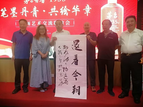 丁广明先生(右3)向主办方赠送书法作品 2025年7月12日,将士丰采书画院理事、军旅书法家丁广明大校应邀出席由山东沂蒙地区在京相关单位组织举办的“情系沂蒙,红心向党”——纪念抗日战争胜利80周年百名书画家联谊活动,现场向主办单位赠一幅“还看今朝”四尺竖幅书法作品,受到主办方的欢迎。 活动现场,书画家们豪情满怀,精神抖擞,挥亳泼墨,忆沂蒙革命老区人民,在战争年代,为全中国革命的最后胜利和解放,付出了巨大牺性。 本期艺术顾问 姚振普、刘智辉、韩山林、张成银、任麟、赵俊生、刘泽群 供稿 将士丰采书画院行草书创作组 校对:马艳华 审编:李德金 审定:王景轩