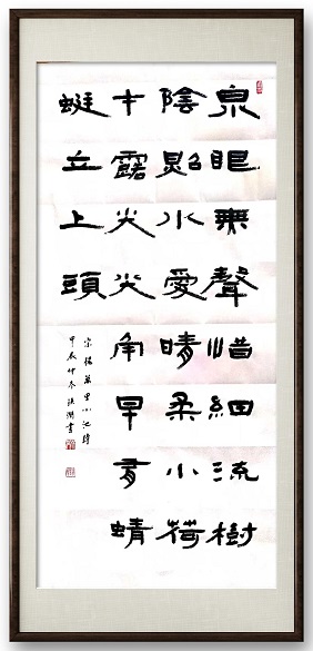 宋杨万里诗《小池》“泉眼无声惜细流,树阴照水爱晴柔”,在孙润先生的笔下,小池的清幽与生机跃然纸上,让我们领略到篆书艺术与古典诗词融合的独特魅力。