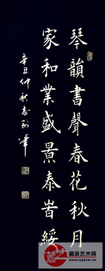 王志刚书法作品“琴韵书声春花秋月,家和业盛景泰时绥”