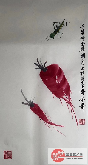 2022年3月30日张国富原创写意作品《水萝卜蚂蚱》 原版生宣 规格:68X34 CM