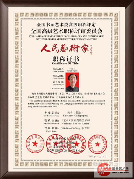 八十年代初开始发表作品,三十多年来,二百七十多条(幅)作品相继出炉,其中反映生态环境内容的二十多幅作品分别被《空军报》,《解放军报》予以发表。并于2021年党的100周年纪念日之际,被中华国礼艺术官方特邀为艺术家,并发表了宋海军“美术作品集”。1989年转业到地方工作后,分别在内蒙古呼市,乌拉特前旗开办了《翰墨苑画室》。利用业余时间为社会培育专业人才。其中有翟彦语等十多名学生分别考入清华大学,重庆大学和中国传媒大学等院校,获得社会各界的广泛赞誉。2018年在第十八届中国世纪大采风年度人物总结表彰大会暨CCTV电视人物颁奖盛典中被评为“中国当代德艺双馨艺术家”。2019年获得甘肃省金牌书画一等奖,传世书画家美术作品二等奖。现在仍笔耕不止,数幅作品获得奖项。